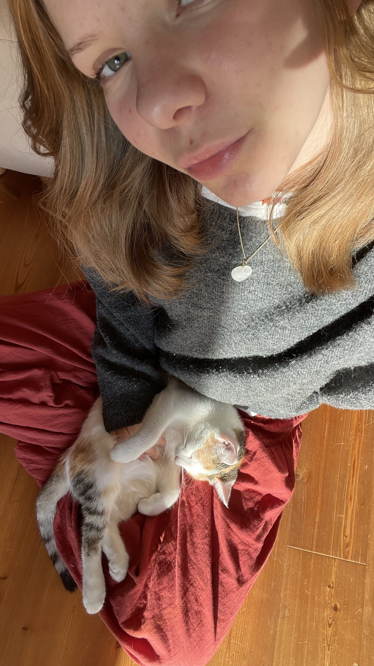 Outside of school, I’m part of a nature youth group similar to the scouts, where I help organize kids’ camps. I love spending time in nature, baking, cooking, second-hand shopping, and skiing. I’m also a big cat lover!
